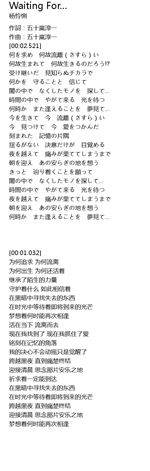 | [03:23.507] | 時間の中で やがて来る 光を待つ |