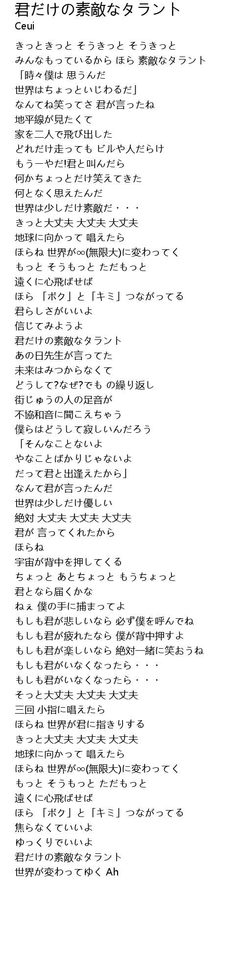 | Song | 君だけの素敵なタラント |