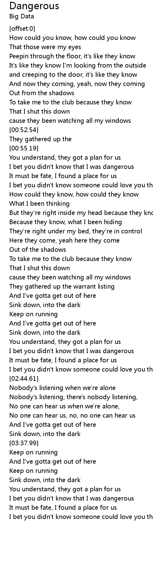 | [01:00.16] | I bet you didn't know that I was dangerous |