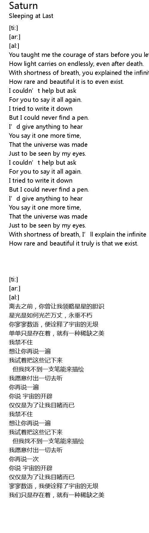 | [02:39.30] | How light carries on endlessly, even after death. |