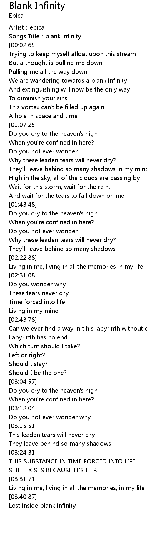 | [02:44.34] | Can we ever find a way in t his labyrinth without end? |