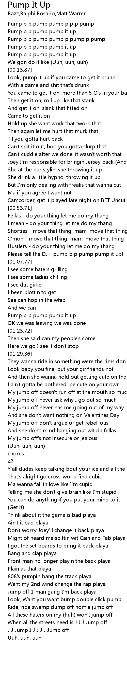Pump It Up Lyrics