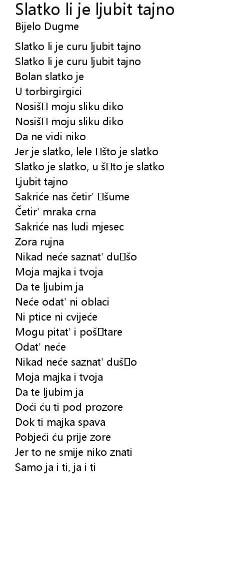 | Song | Slatko li je ljubit tajno |