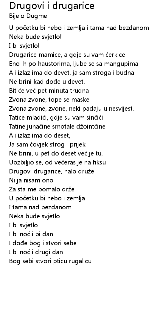 | Song | Drugovi i drugarice |