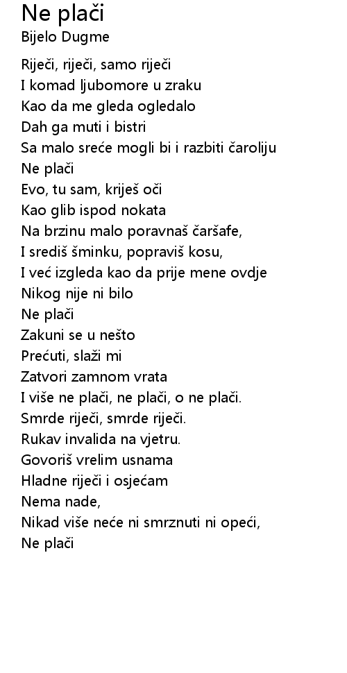 | I više ne plači, ne plači, o ne plači. | |