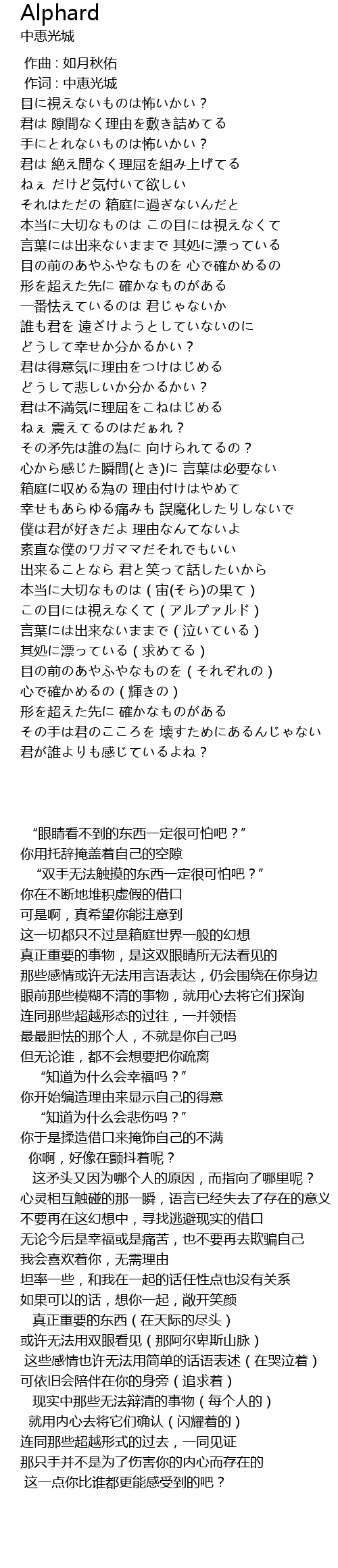 | [04:23.44] | この目には視えなくて(アルプァルド) |