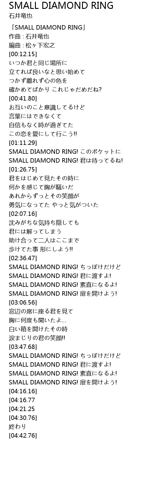 | [04:02.46] | SMALL DIAMOND RING! 素直になるよ! |