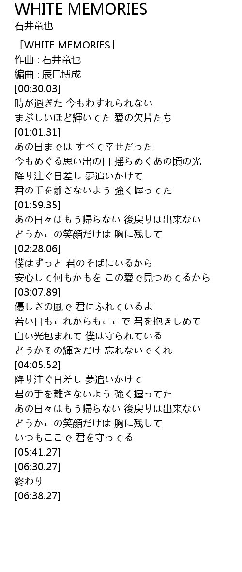 | [00:00.03] | 「WHITE MEMORIES」 |