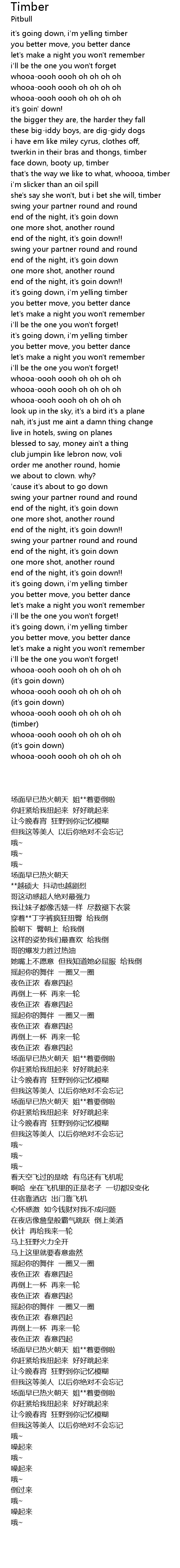 | [00:50.600] | she's say she won't, but i bet she will, timber |