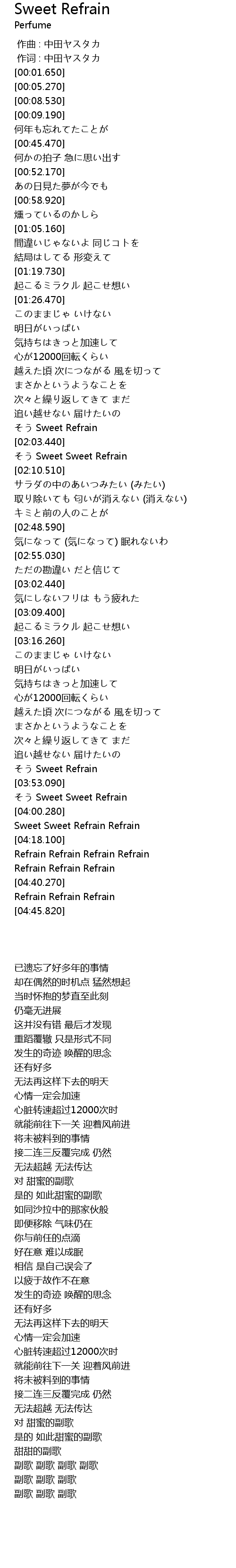 | [04:06.150] | Sweet Sweet Refrain Refrain |