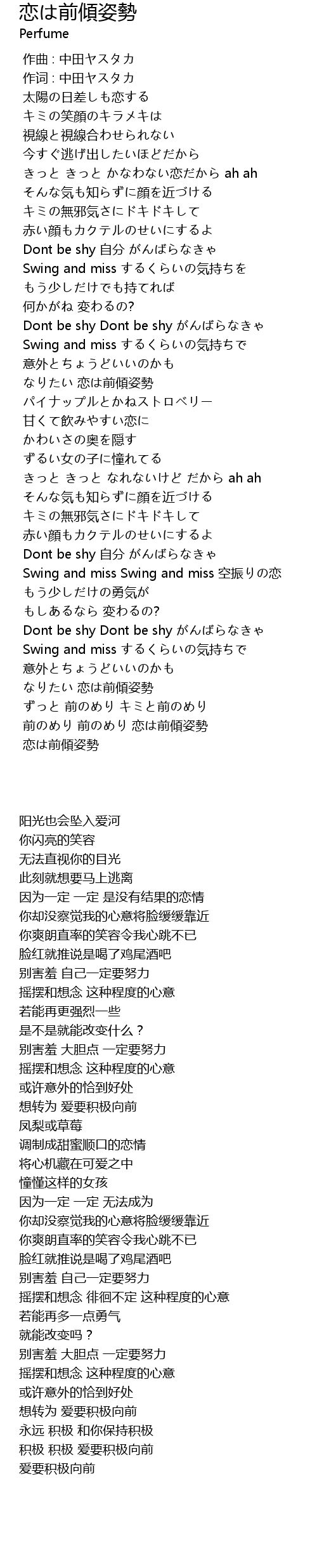 | [03:26.000] | 前のめり 前のめり 恋は前傾姿勢 |