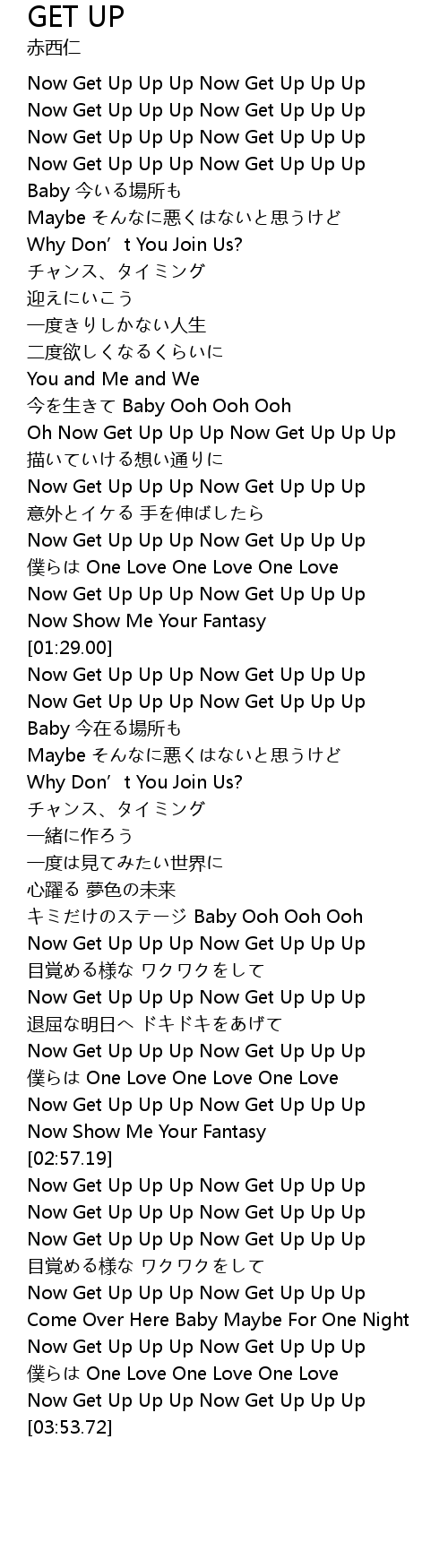 | [03:19.58] | Now Get Up Up Up Now Get Up Up Up |