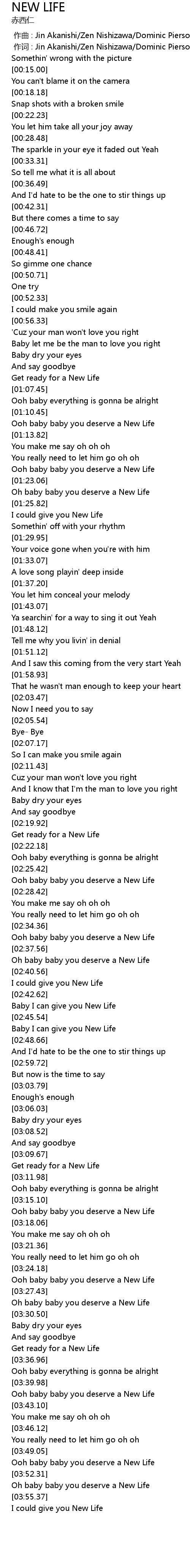 | [02:34.99] | Ooh baby baby you deserve a New Life |