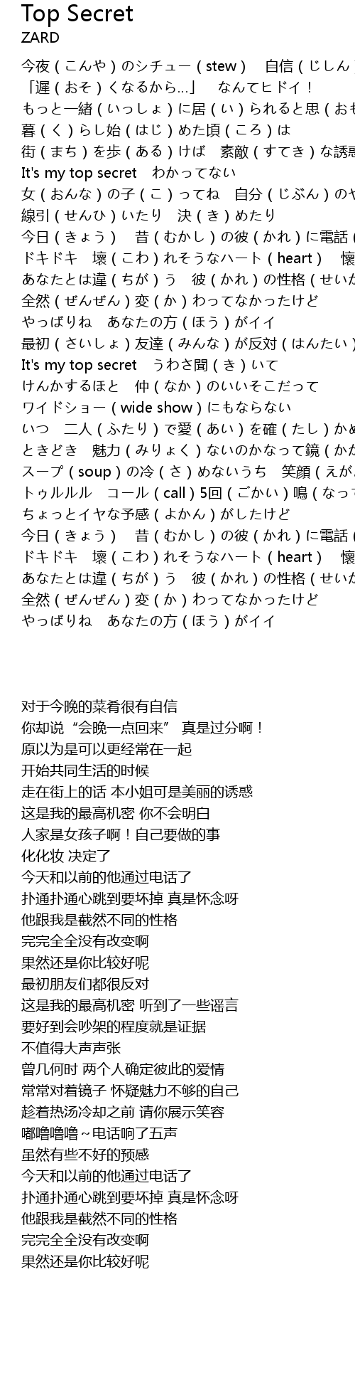 | [00:59.47] | It's my top secret わかってない |