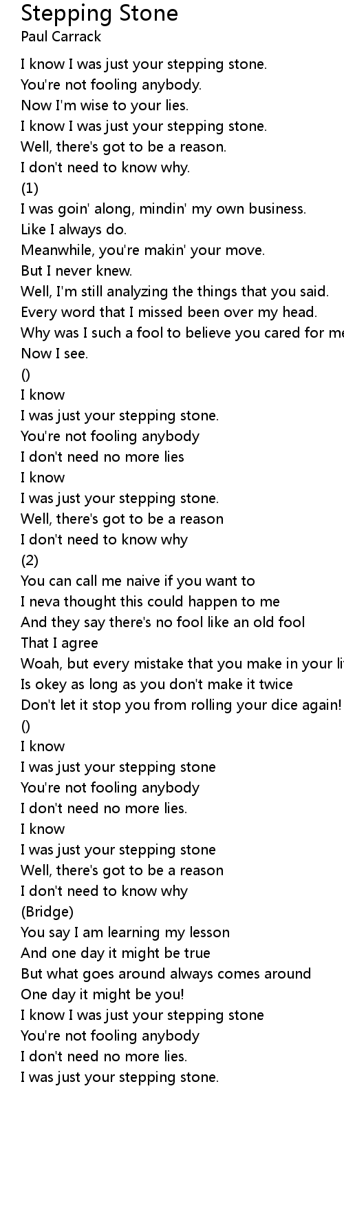 I know I was just your stepping stone. |