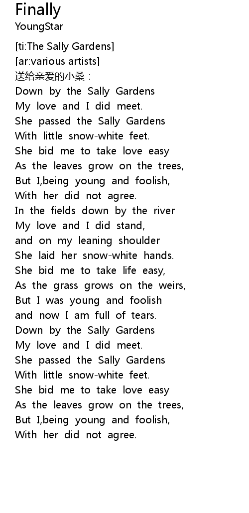 | [02:53.55] | Down by the Sally Gardens |