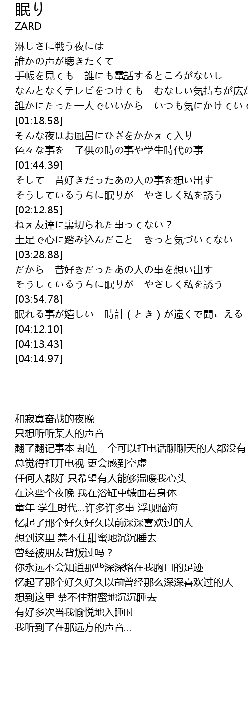 | [03:43.89] | そうしているうちに眠りが やさしく私を誘う |