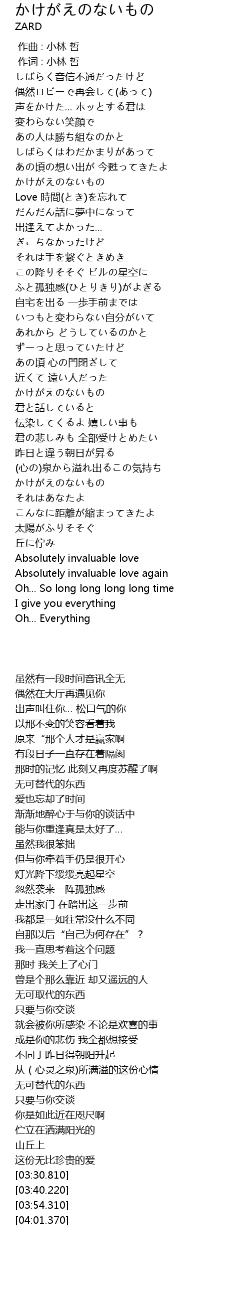 | [02:12.790] | かけがえのないもの |