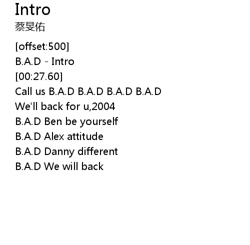 | [00:29.60] | Call us B.A.D B.A.D B.A.D B.A.D |