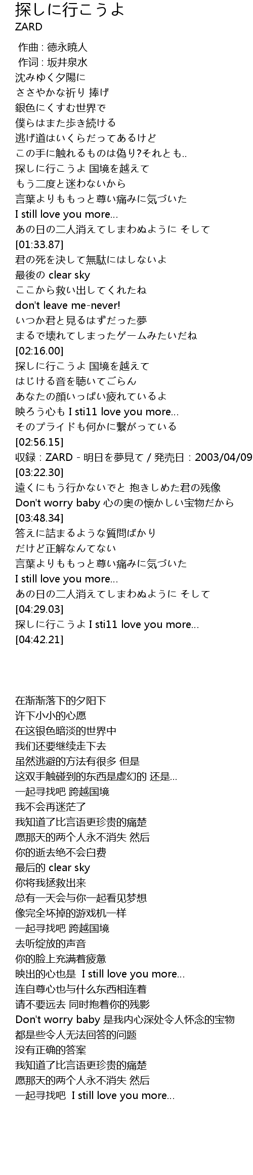 | [04:31.77] | 探しに行こうよ I sti11 love you more… |