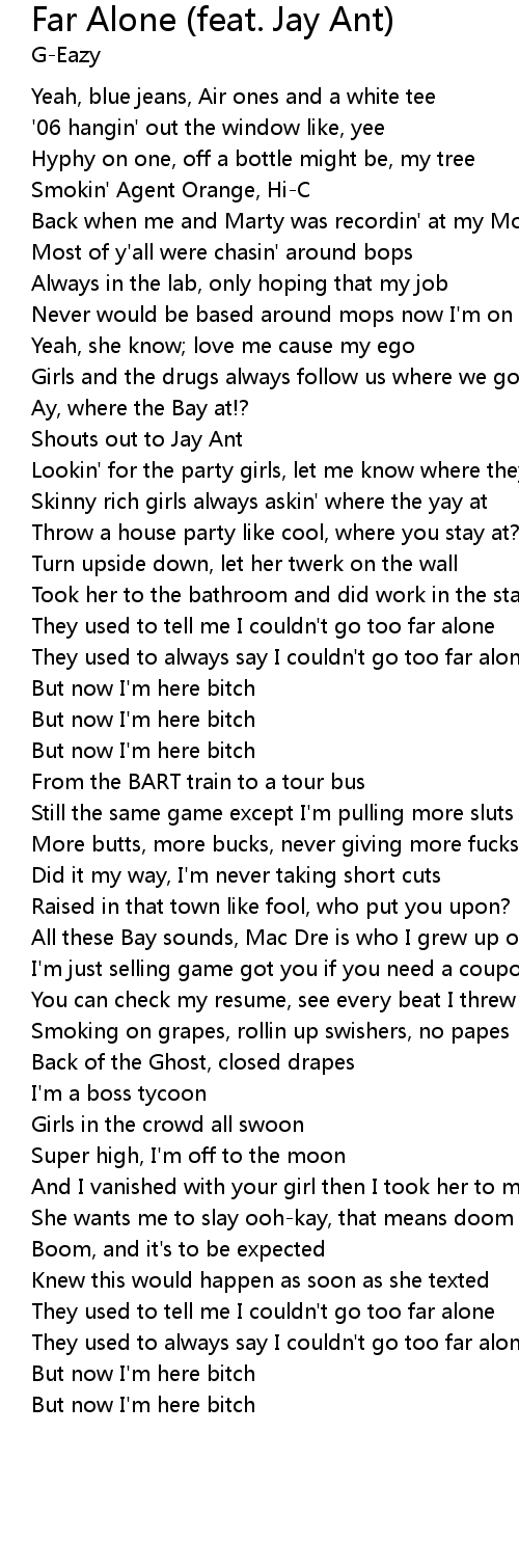 | [00:22.51] | '06 hangin' out the window like, yee |