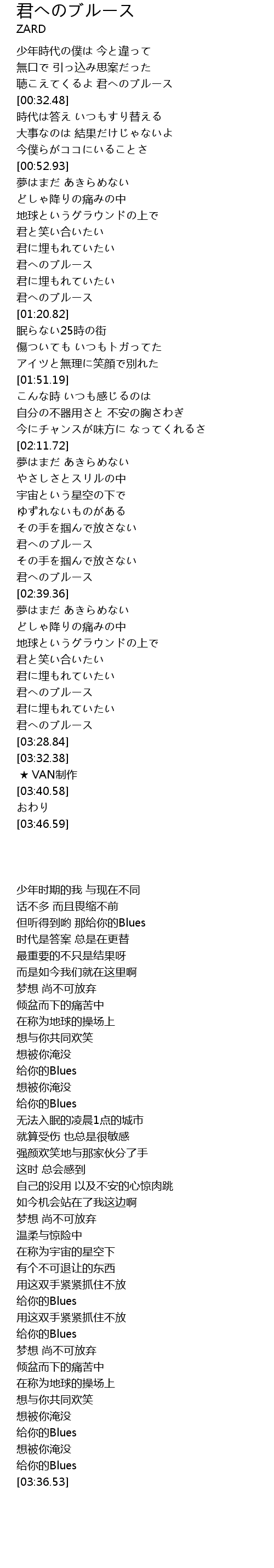 | [00:27.64] | 聴こえてくるよ 君へのブルース |