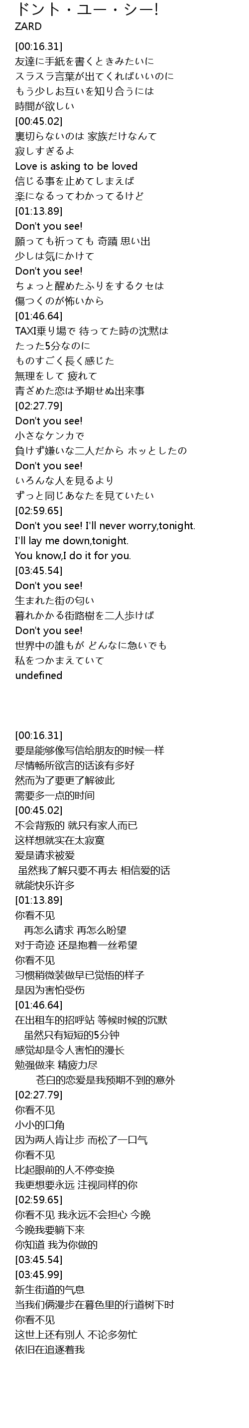 | [03:31.19] | Don't you see! I'll never worry,tonight. |