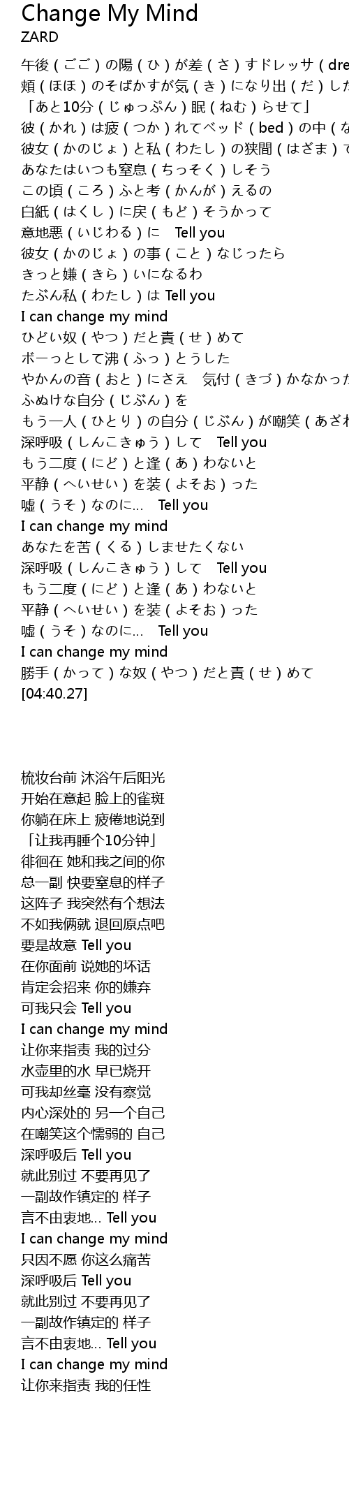 | [04:13.33] | 深呼吸(しんこきゅう)して Tell you |