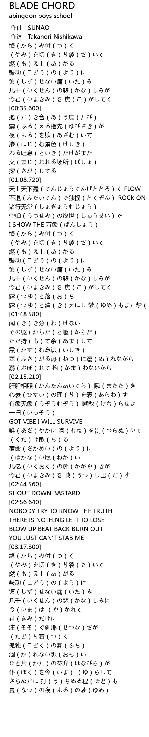 | [03:12.790] | BLOW UP BEAT BACK BURN OUT |