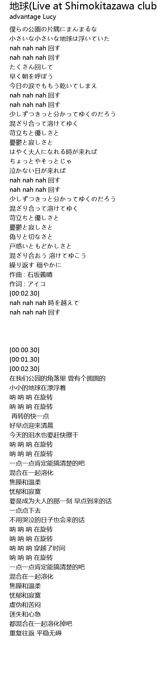 | [00:59] | 小さいな小さいな地球は浮いていた |