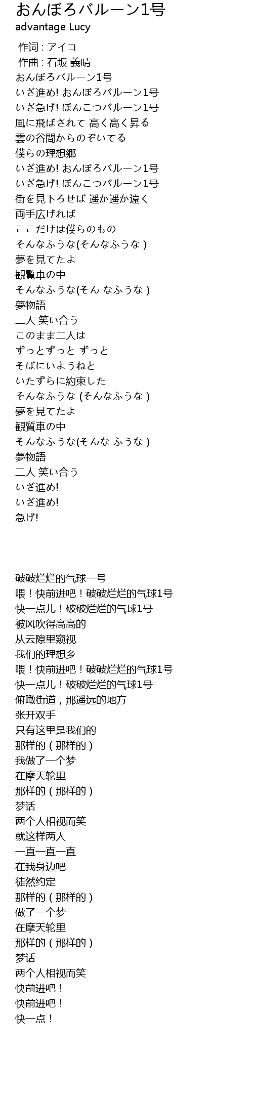 | [00:10.88] | いざ進め! おんぼろバルーン1号 |