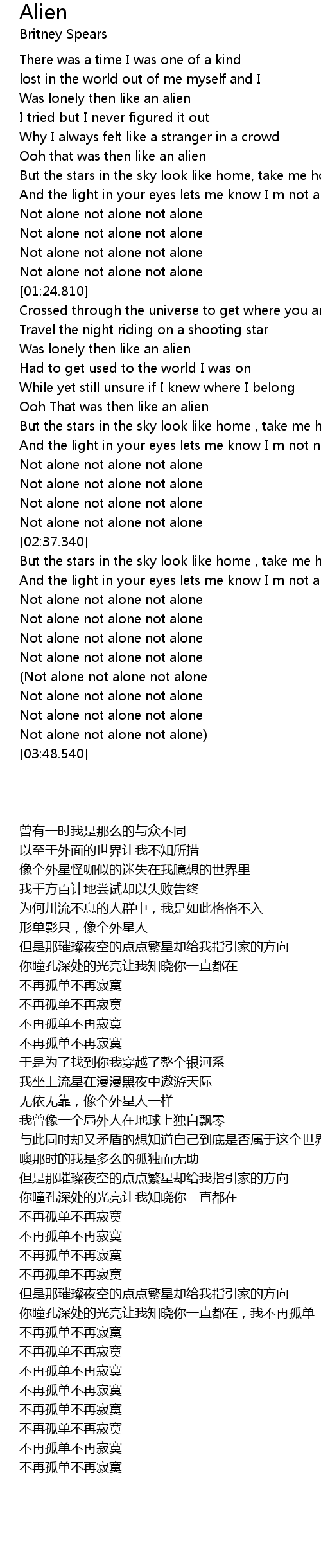 [03:18.120] Not alone not alone not alone