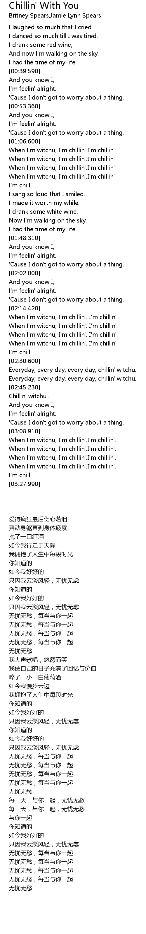 When I'm witchu, I'm chillin'.I'm chillin' |