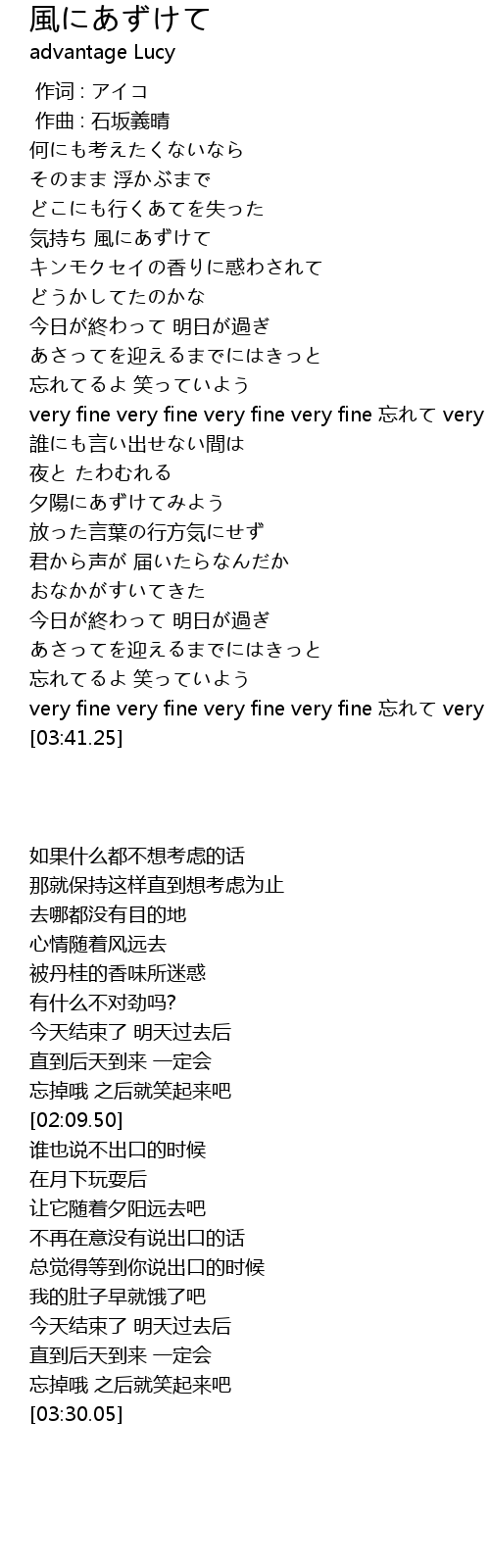 | [03:30.05] | very fine very fine very fine very fine 忘れて very fine |
