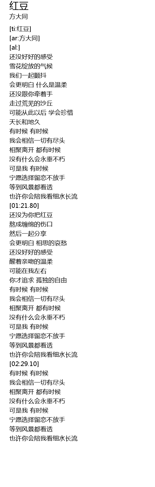 | [01:22.65] | 还没为你把红豆 |