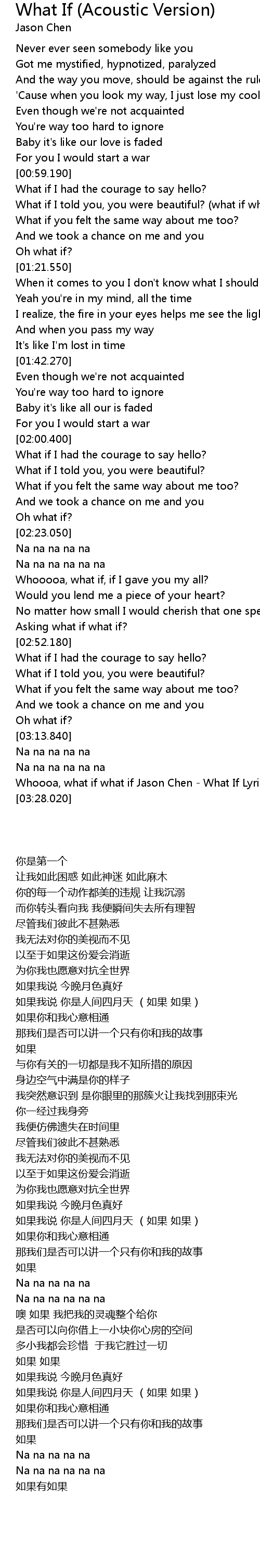 [03:19.530] Whoooa, what if what if Jason Chen - What If Lyrics