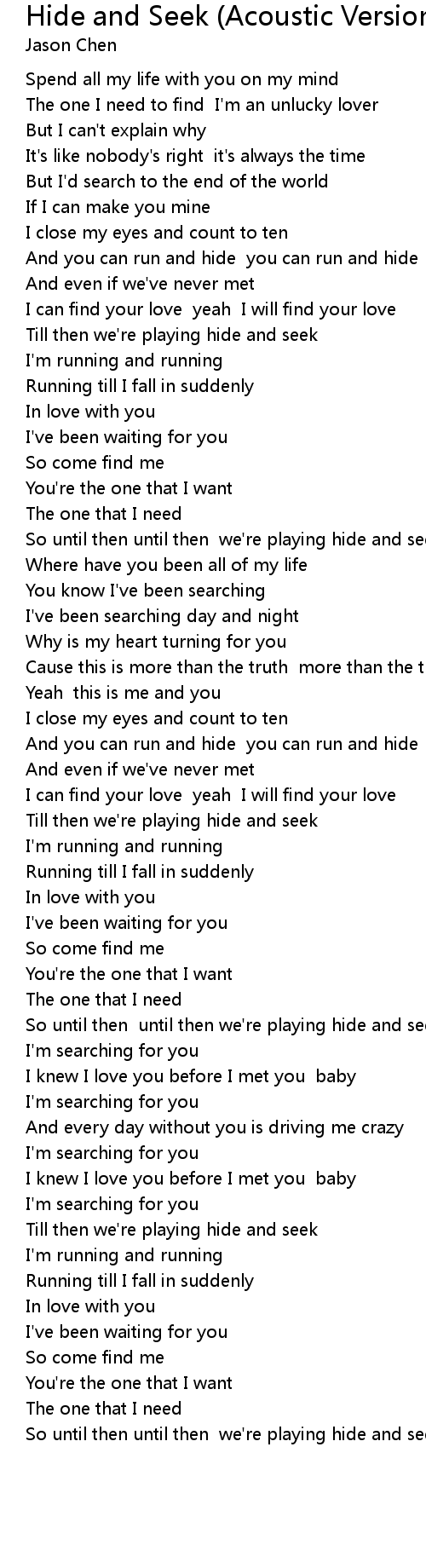 Hide and Seek (Acoustic Version) Lyrics