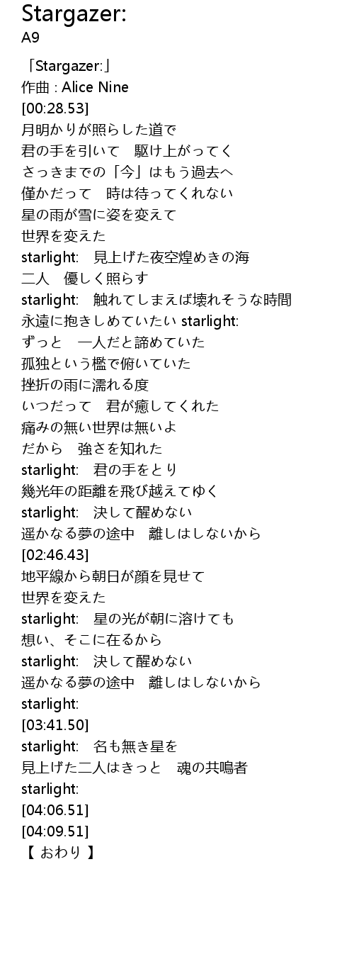 | [02:29.63] | starlight: 決して醒めない |
