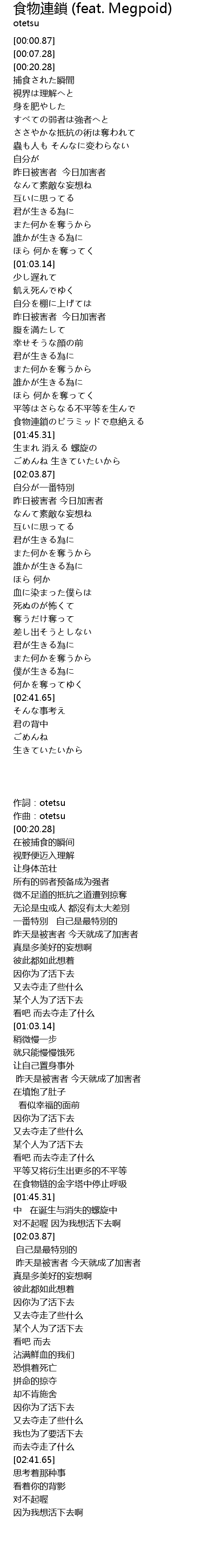 | [01:40.11] | 食物連鎖のピラミッドで息絶える |