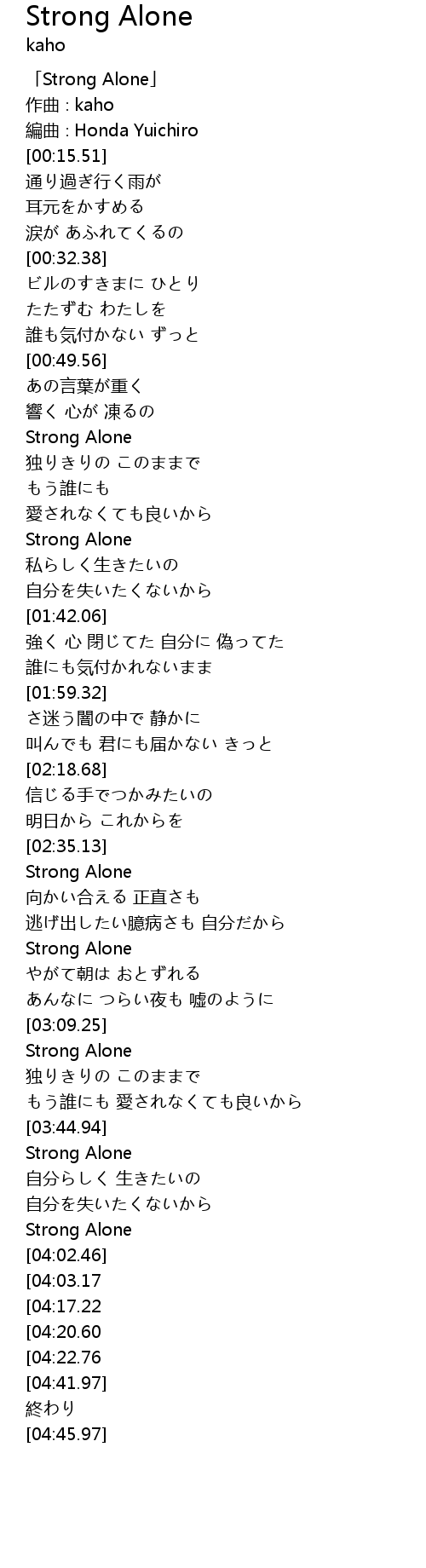 | [01:43.79] | 強く 心 閉じてた 自分に 偽ってた |