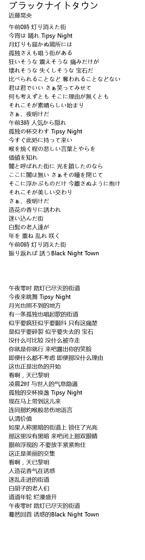 | [02:42.550] | 振り返れば 誘うBlack Night Town |