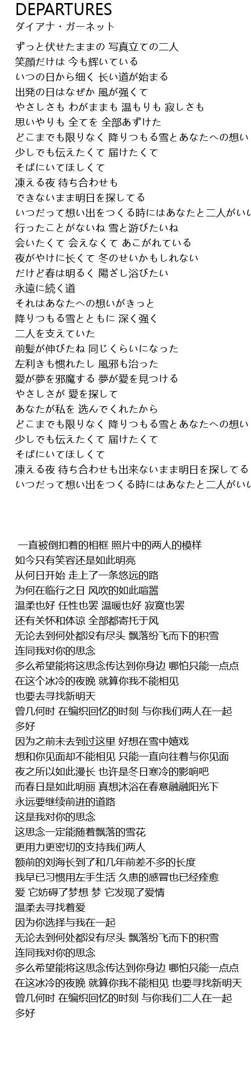 | [04:10.67] | どこまでも限りなく 降りつもる雪とあなたへの想い |