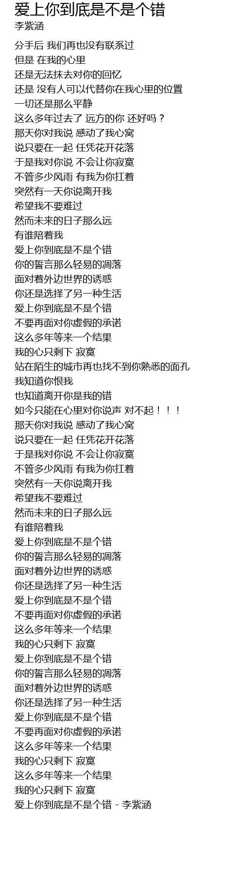 | [04:12.48] | 爱上你到底是不是个错 - 李紫涵 |