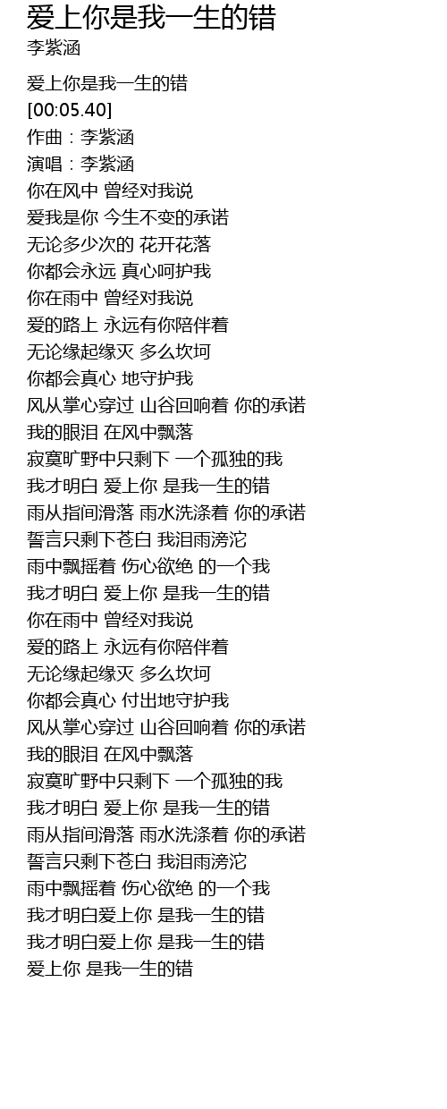 | [03:33.44] | 我才明白 爱上你 是我一生的错 |