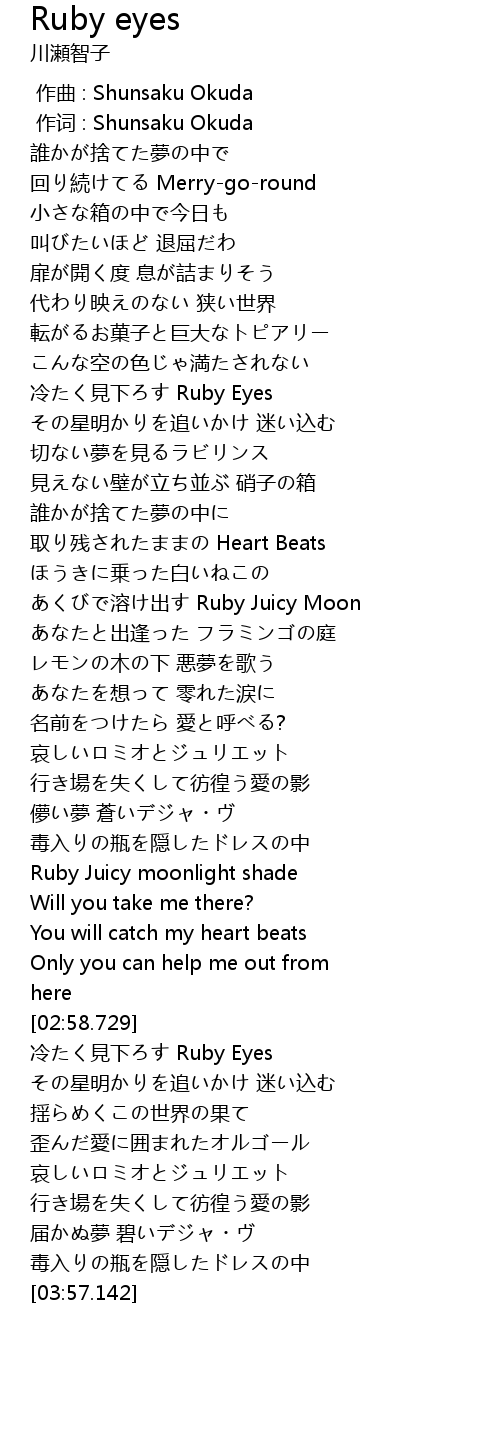 | [03:07.452] | 冷たく見下ろす Ruby Eyes |
