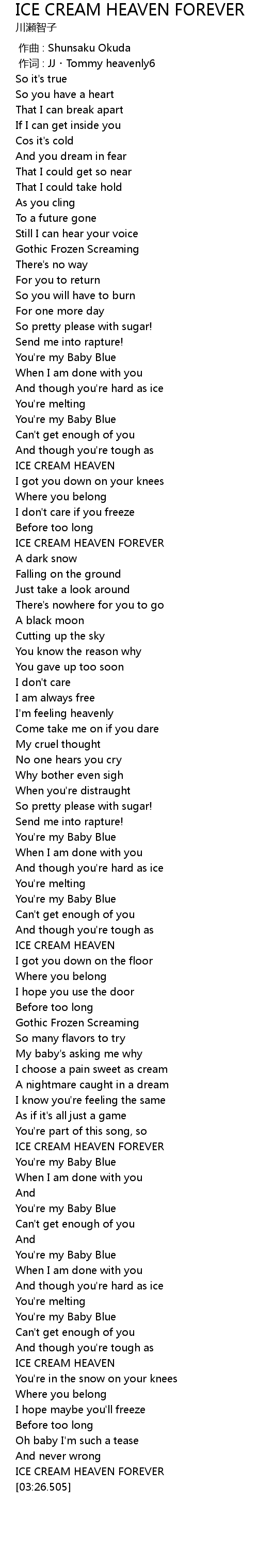 | [03:19.431] | ICE CREAM HEAVEN FOREVER |