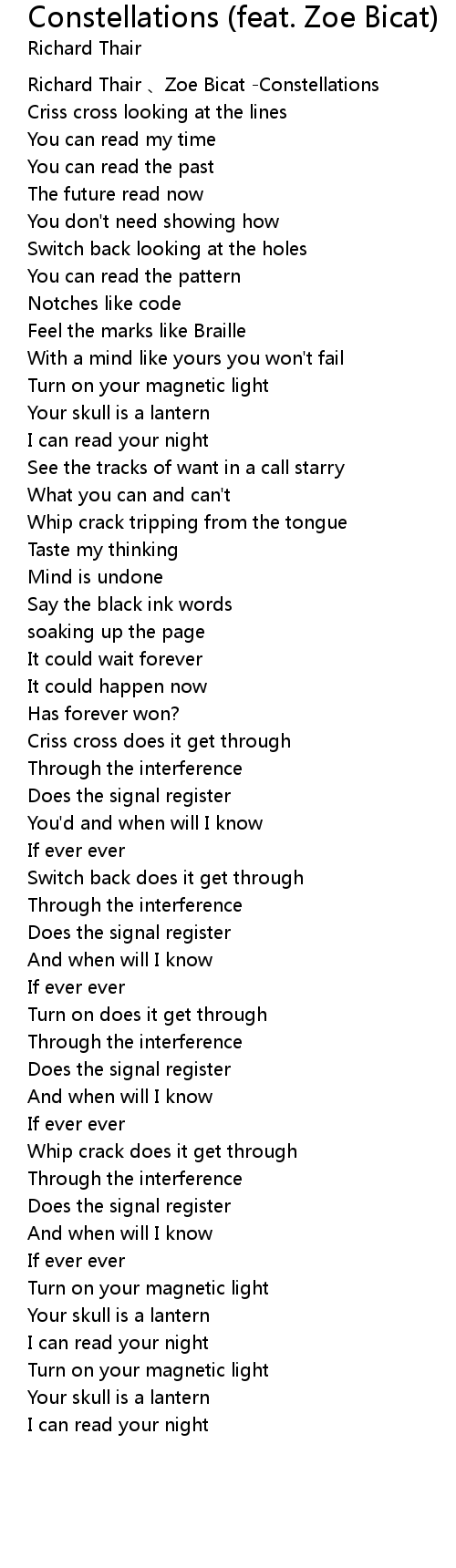 | [00:00.474] | Richard Thair Zoe Bicat Constellations |