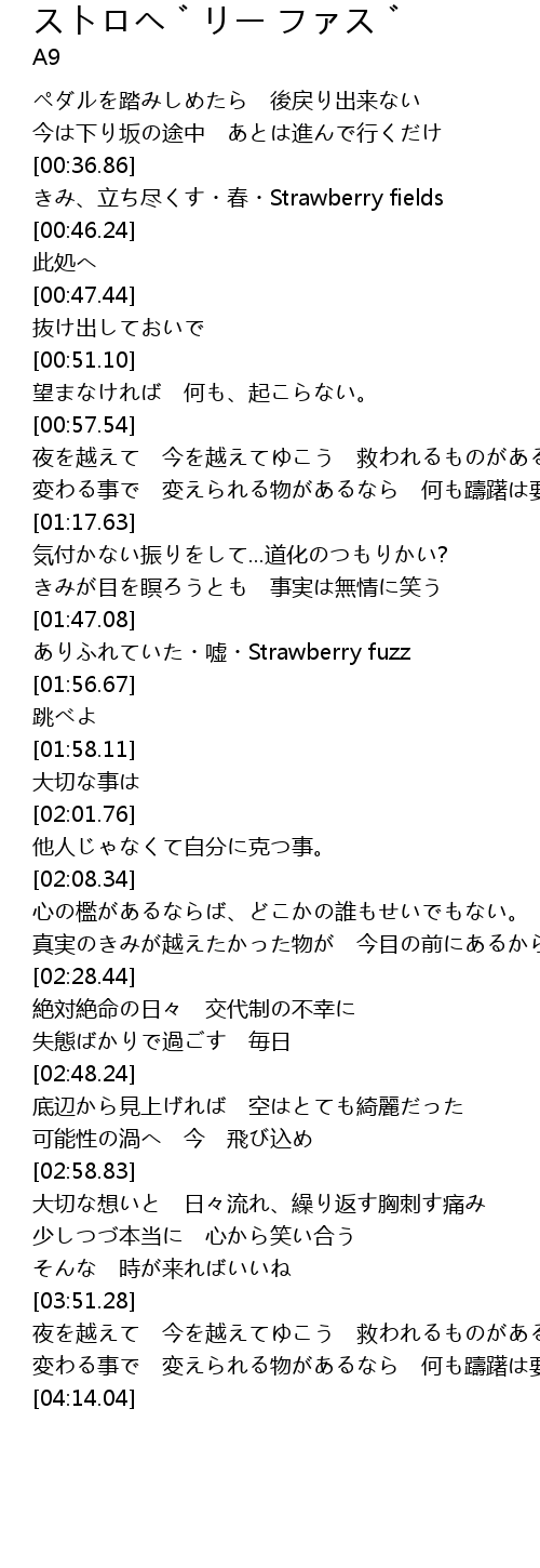 | [01:47.70] | ありふれていた・嘘・Strawberry fuzz |