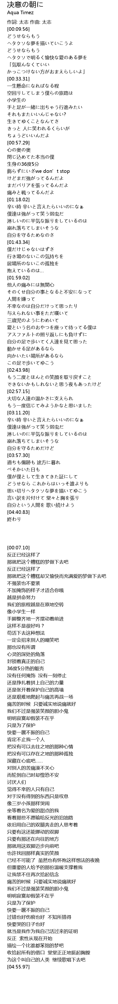 | [00:07.10] | 作詞: 太志 作曲: 太志 |