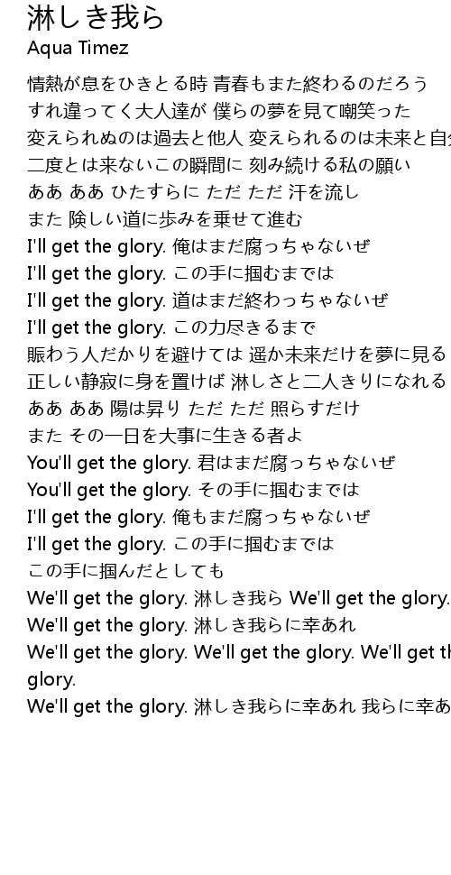 | We'll get the glory. 淋しき我らに幸あれ 我らに幸あれ |